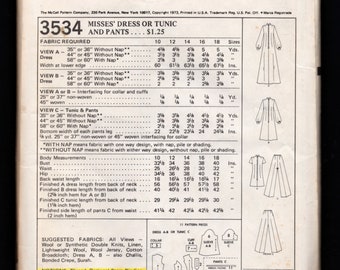 Misses Dress Or Tunic And Pants Mccalls Sewing Pattern 3534 Etsy De